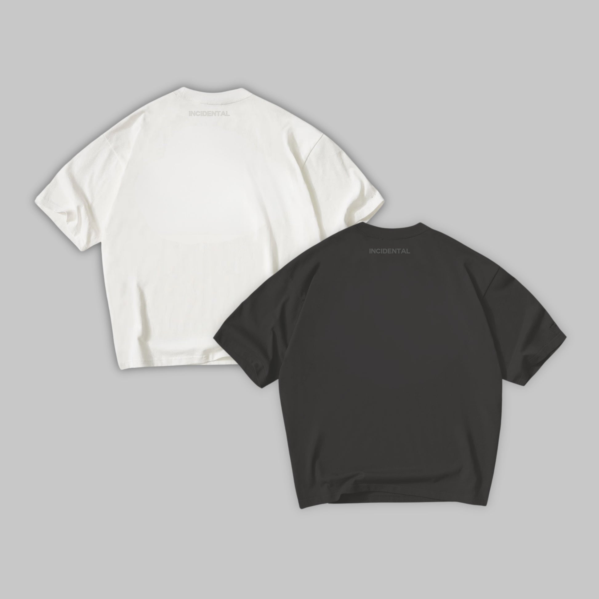 El Dual pack más indispensable de INCIDENTAL. Incluye una camiseta negra y una blanca, ambas con el mismo fit oversize y confeccionadas en algodón premium de alto gramaje para una caída impecable, textura suave y durabilidad superior.